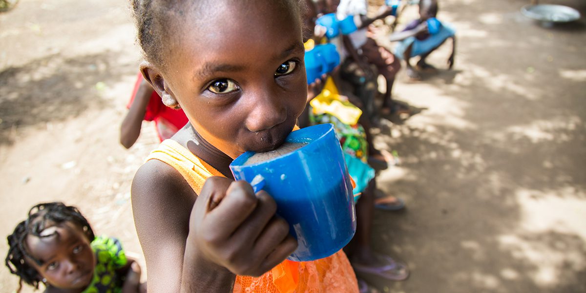 Maban: A girl has her lunch at the Gulawein school, in Maban, South Sudan. Around 200 children attend this school supported by Jesuit Refugee Service (JRS), which is building new classrooms, providing daily food and paying teachers. (Albert Gonzalez Farran)
