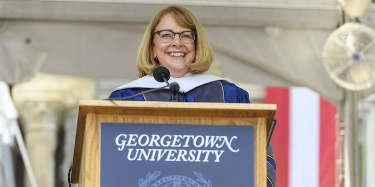 JRS/USA is excited to announce that our Executive Director, Joan Rosenhauer proudly received an honorary doctorate of humane letters degree and spoke at the 2019 Commencement of the School of Nursing & Health Studies. She celebrated and provided words of encouragement to 112 students who earned bachelor’s degrees in global health, health care management & policy, human science, and nursing, as well as 343 students who received master’s degrees in health systems administration and nursing, and seven students who received their doctor of nursing practice degree.